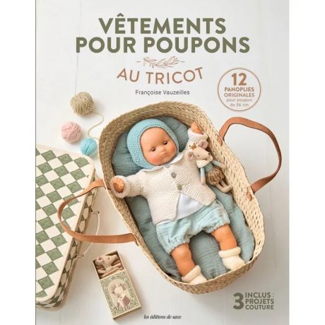 Même s’il ne s’agit pas d’un livre couture poupons, ce livre tricot propose 3 habits basiques à coudre pour les assortir à la layette tricotée : pantalon, bloomer et blouse.