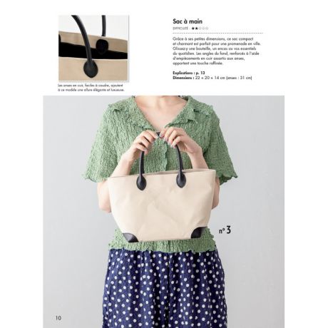 Ils se confectionnent sans patrons, il vous suffira de reporter sur la toile les mesures indiquées dans chacun des tutoriels. A cela, s’ajoutent de nombreux accessoires aux fermetures zippées avec des explications en pas à pas vous assurant une technique de pose absolument parfaite.