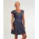 Sa coupe raffinée se distingue par un décolleté en V aussi bien à l'avant qu'à l'arrière, des épaules longues créant une délicate sensation de manchons, et une jupe trapèze pouvant être sublimée par des volants.