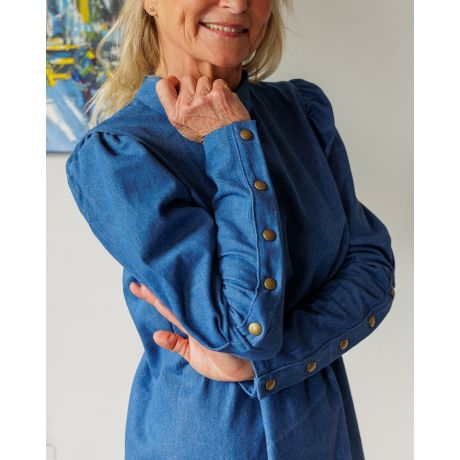 Les manches "gigot" d'Ashley sont indéniablement l'un des points forts de ce patron. Cette coupe originale apporte une touche de romantisme et de charme à l'ensemble, accentuée par la présence de boutons sur les manches, ajoutant une note d'élégance supplémentaire. Amusez-vous à jouer avec les boutons positionnés délicatement sur les avant-bras pour sublimer votre blouse ou votre robe.