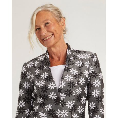 La coupe ajustée de Naïade met en valeur la silhouette avec élégance, soulignant délicatement vos courbes. Les détails soignés, comme la découpe bretelle et les poches passepoilées à rabat, ajoutent une dimension sophistiquée à cette veste. Les manches longues apportent une touche classique, tandis que la longueur jusqu'au bassin offre une polyvalence de style, idéale pour différentes occasions. Associez-la à une robe, une jupe crayon ou un pantalon fuselé pour une allure distinguée et très féminine.