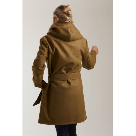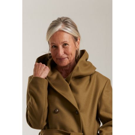 Sa coupe croisée, sa grande capuche oversize et sa ceinture à nouer lui confèrent une silhouette enveloppante et féminine, parfaite pour les journées froides. Ses détails soignés — capuche généreuse, double boutonnage, poches passepoilées et longueur mi-cuisse — apportent une touche d’élégance tout en garantissant un confort absolu.
