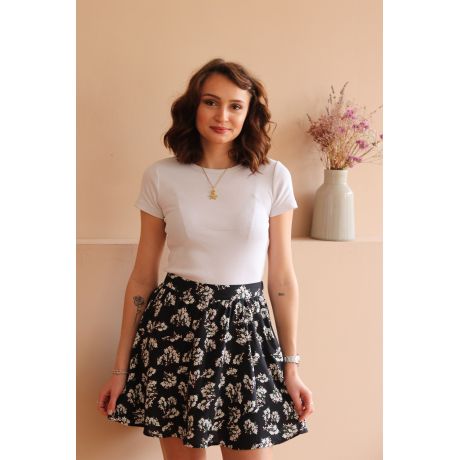 Nous nous sommes inspirées d’une jupe portefeuille légèrement revisitée pour éviter de trop en dévoiler lors des coups de vent. Bliss de Lise Tailor est une jupe taille haute, longueur mi-cuisse, aussi facile à coudre qu’à porter. Son élastique au dos permet de l’ajuster sans difficultés à son tour de taille et assure le confort au porté. Petit plus pour les tissus clairs de l’été : une version doublée est proposée dans le tutoriel. Son montage original en fait une pièce moderne et féminine.