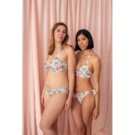 "Hello Sunshine" de Lise Tailor est un joli maillot de bain deux pièces. Il se compose d’un haut en forme de triangle à nouer, avec deux options de bas possibles : une version échancrée nouée sur les hanches et une seconde un peu plus couvrante habillée d’un volant ! Un modèle confortable et adapté à différentes morphologies qui vous accompagnera pour vos bronzettes et vos plongeons de cet été !