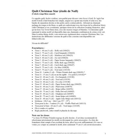 Quilt Christmas Star (étoile de Noël) (Coloris rouge/bleu canard)