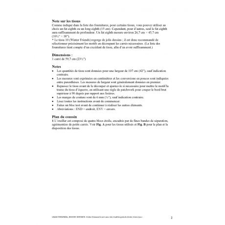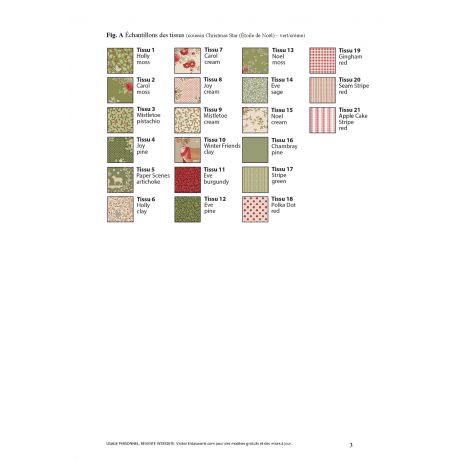 Cet oreiller confortable et moelleux, idéal pour le cocooning, s’associe merveilleusement au quilt Christmas Star. Bien qu’il s’agisse du même bloc étoile à huit branches, l’oreiller n’en intègre que quatre, joliment rehaussés par des bandes de séparation et des petits carrés. Avec ses teintes vertes et crème, cet oreiller s’inspire des conifères de la saison hivernale. Pour sa réalisation, ce motif intègre des tissus de la collection Merry Little Christmas et ses coordonnés, quelques tissus de la collection Creating Memories, ainsi qu’un tissu Tea Towel Basic tissé, avec des rayures rouges et blanches.