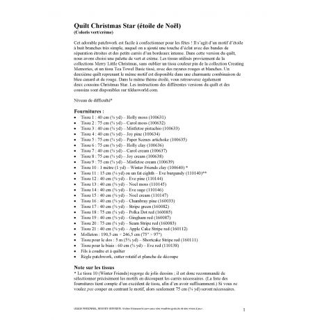 Quilt Christmas Star (étoile de Noël) (Coloris vert/crème)
