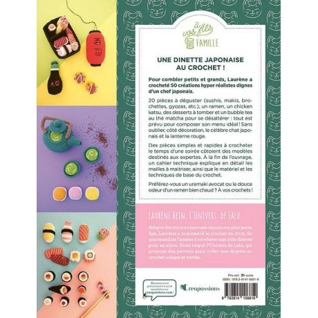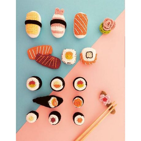 Outre les incontournables délices japonaises, Laurène Rein de l'Univers de Lalu a créé des modèles inédits, moins connus des fans de crochet, et pourtant incontournables pour tous les passionnés de cuisine japonaise.