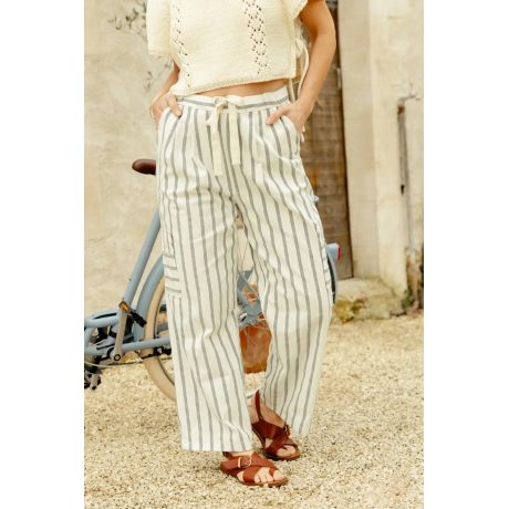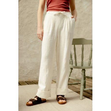 Le pantalon Eva de Maéli Paris propose une coupe ample et élégante. Il se porte légèrement taille haute, et est doté d'un élastique à l'arrière pour offrir un confort optimal. Plusieurs options sont disponibles : poches "cargo", revers.