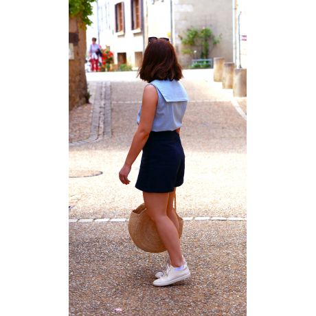 Bari de Ancea Paris, c’est une ravissante blouse à col marin arrondi. A la fois baby-doll et féminine, cette blouse originale se mariera avec toutes les tenues d’été. Conseil look : à porter blousée dans une jupe, un short ou un pantalon.