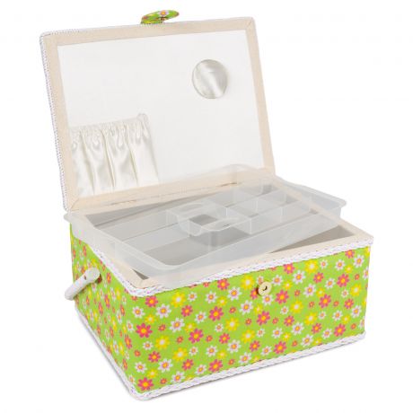 Boite à couture vert fleur orange