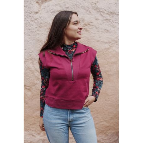 Le sweat Fika de Lise Tailor est un modèle sans manches à la coupe droite séduit par sa simplicité et son confort. Avec son encolure zippée sur le devant, son col montant et ses emmanchures généreuses, il s’adapte parfaitement pour se porter par-dessus un t-shirt, créant une superposition légère et agréable. Confectionné en maille, ce vêtement deviendra vite un indispensable de votre garde-robe mi-saison, pour des moments tout en douceur.