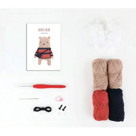 Les créatifs avec un niveau intermédiaire adoreront donner vie à ce grand dessin de Benji l'ours. Le kit ANCHOR contient tout ce dont vous avez besoin pour réaliser votre amigurumi, y compris du fil 100% Coton, un crochet, des accessoires, du rembourrage et des instructions.