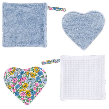 • 4 lingettes en forme de cœur : une face en éponge microfibre ultra