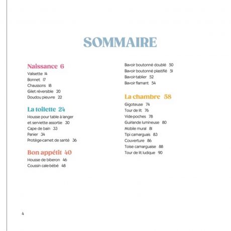 Découvrez 50 vêtements et accessoires : bavoirs, gigoteuses, bloomers mais aussi sacs à langer et nécessaires de toilette ainsi que de nombreuses décorations pour la chambre.
