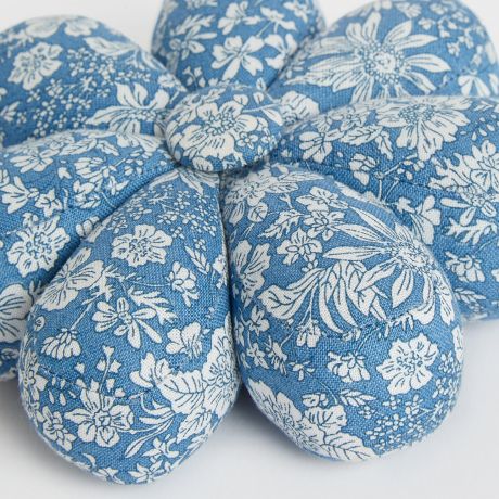 Ce délicat coussin à épingles en forme de fleur est habillé d’un magnifique tissu Liberty qualité Lasenby, reconnu pour l’élégance de ses motifs et la finesse de son tissage.